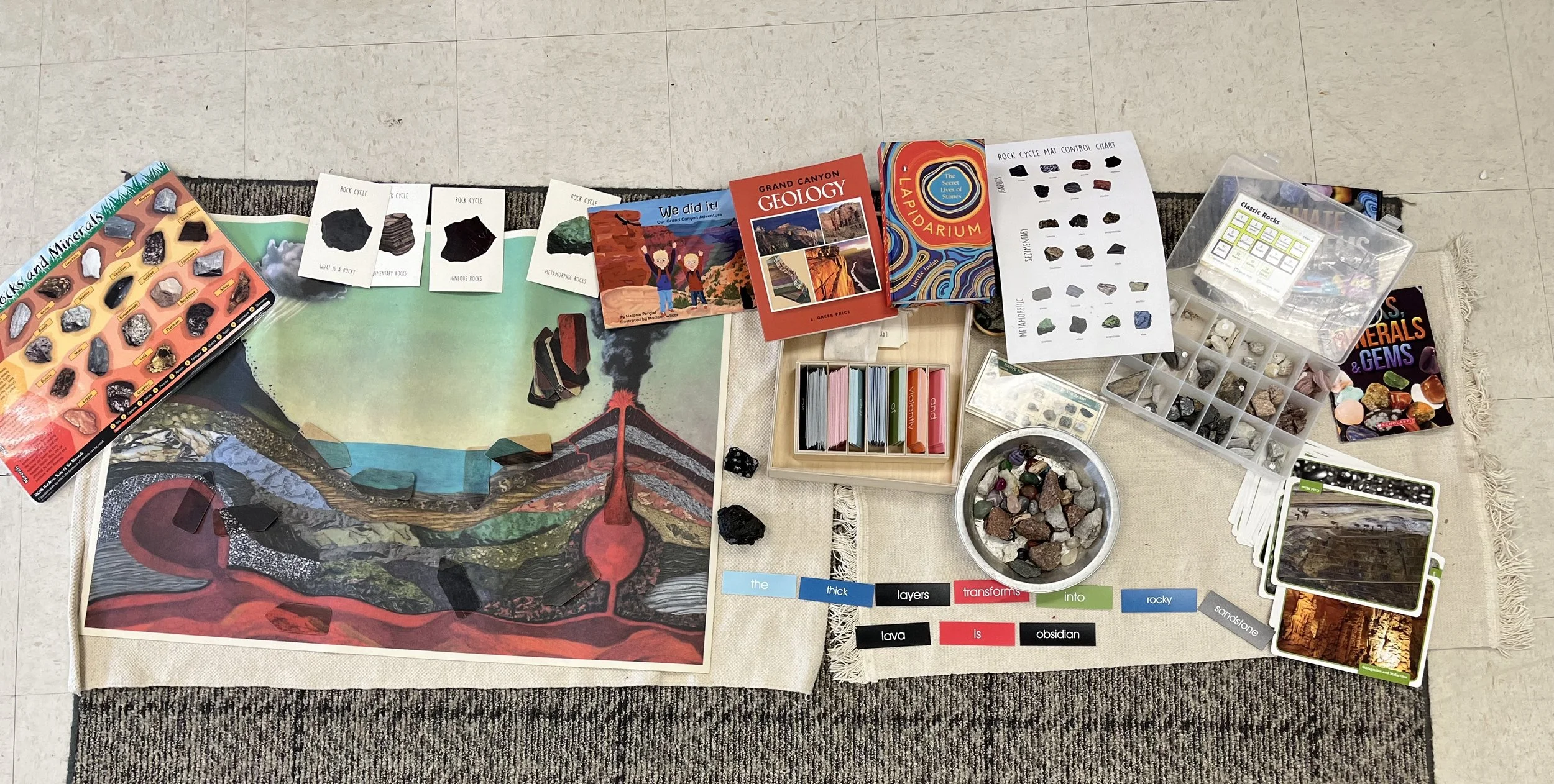 Typically, I like to teach history, one botany or zoology, geography, and science in my Lower Elementary Montessori Classroom each week, but this week I did something different. I focused the whole week on Rocks and Minerals.
